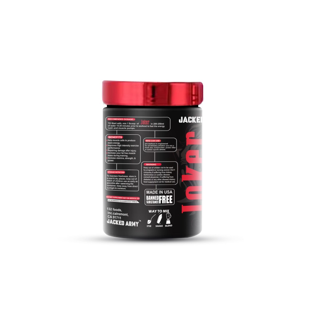Joker Pre-Workout is your ultimate secret weapon for explosive energy, intense focus, and unmatched endurance during your toughest workouts. Formulated with a powerful blend of performance-enhancing ingredients, Joker Pre-Workout delivers rapid energy release, enhanced muscle pumps, and razor-sharp mental clarity. Whether you’re crushing a heavy lifting session or powering through high-intensity cardio, Joker Pre-Workout ensures you’re always one step ahead. With every serving, get ready to unleash your inner beast and dominate your training.